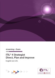 strategic direction. With the help of ITIL® 4 concepts and terminology, activities, exercises, and examples included in the course, you will acquire relevant knowledge to pass the ITIL® Strategist: Direct, Plan, and Improve certification exam.